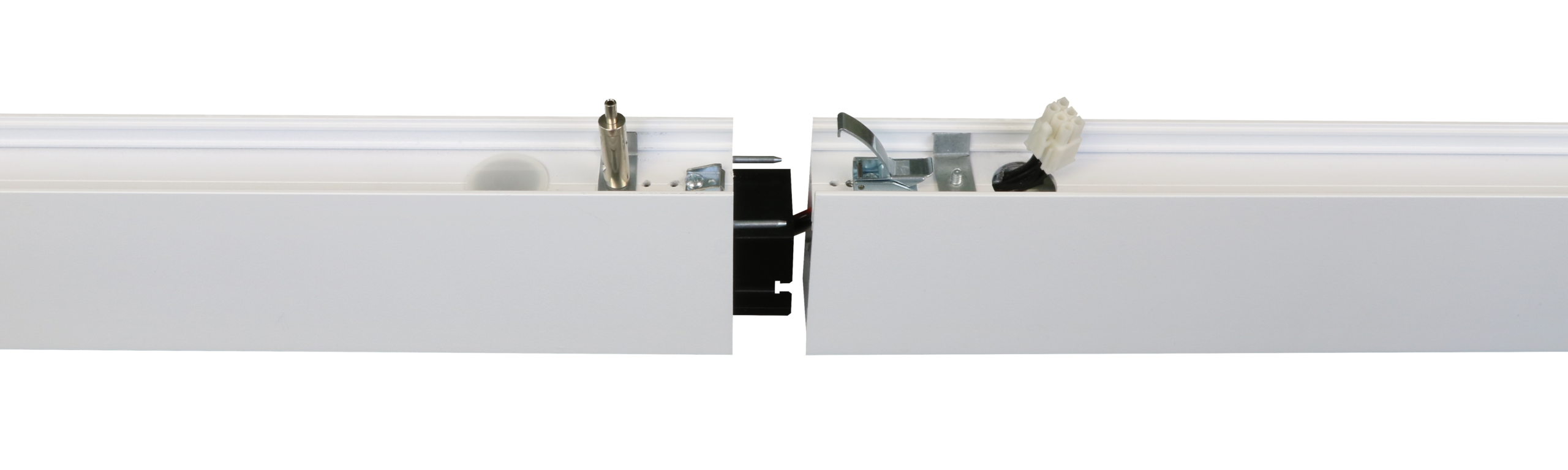 Light leaks in lensed fixtures are nearly inevitable due to the lens shrinking. Quick-Line anticipates this problem and comes with a solution in the box: There are patent pending light block shields at each joint and on the end caps. These shields are spring-loaded and apply a slight amount of pressure on the lens, automatically filling the space created when the lens shrinks.