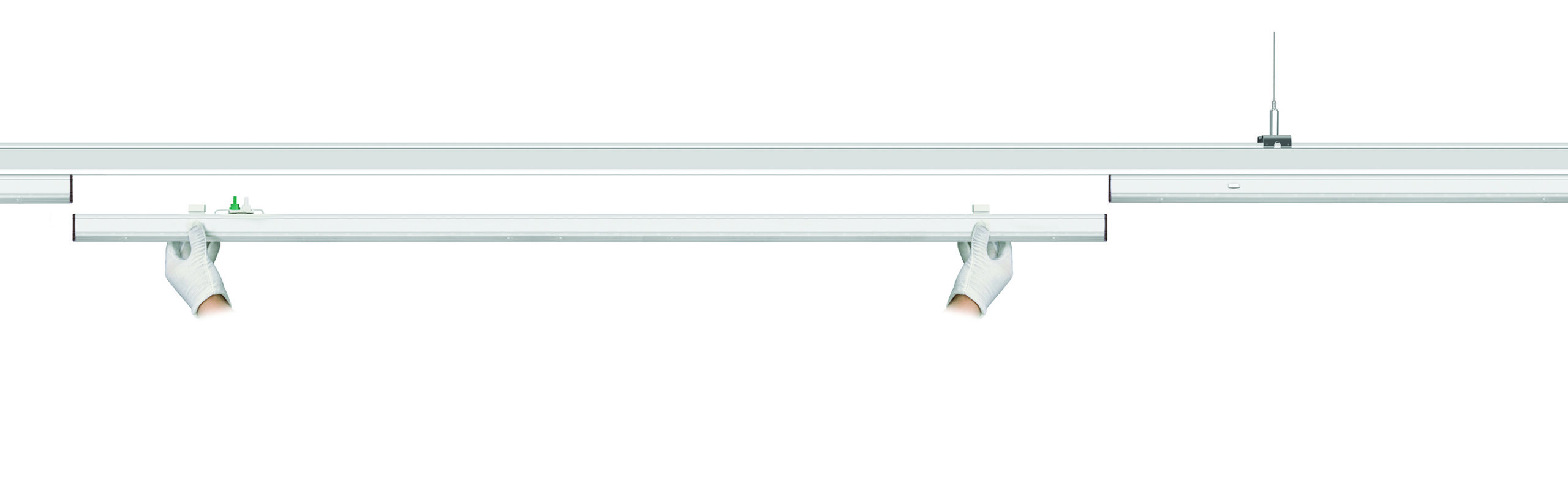 In addition, Cadence features a unique trunking system that is pre-wired with two circuits, as well as an emergency circuit—right out of the box. Installation is easy: Simply connect power to one end of the trunking system, add sections with quick connects and then add lighting modules.