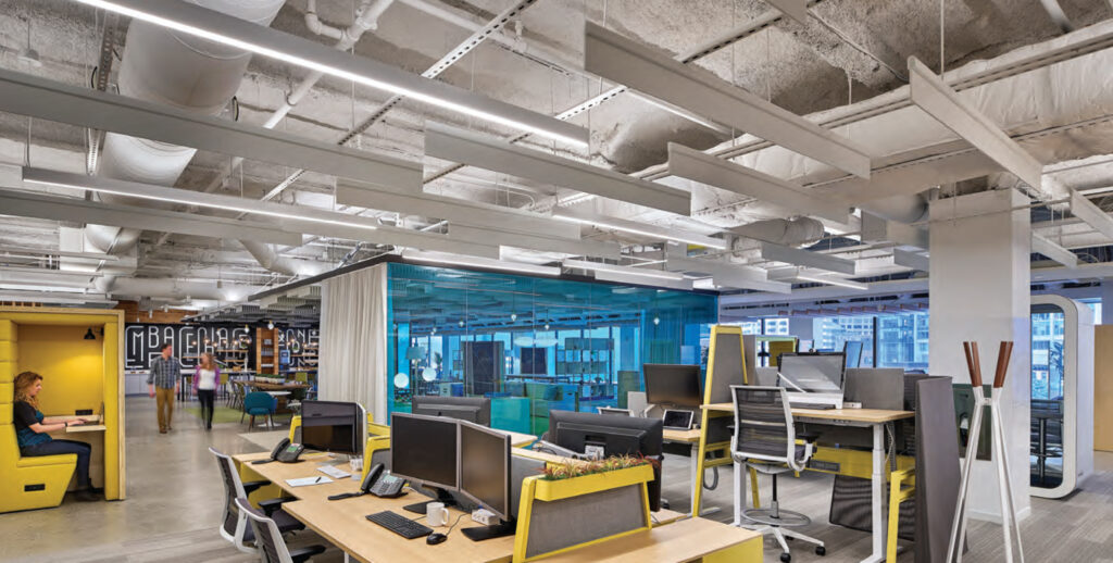 “We’re now seeing LED lighting used a tool for providing better workplace acoustics,” Brancato says.