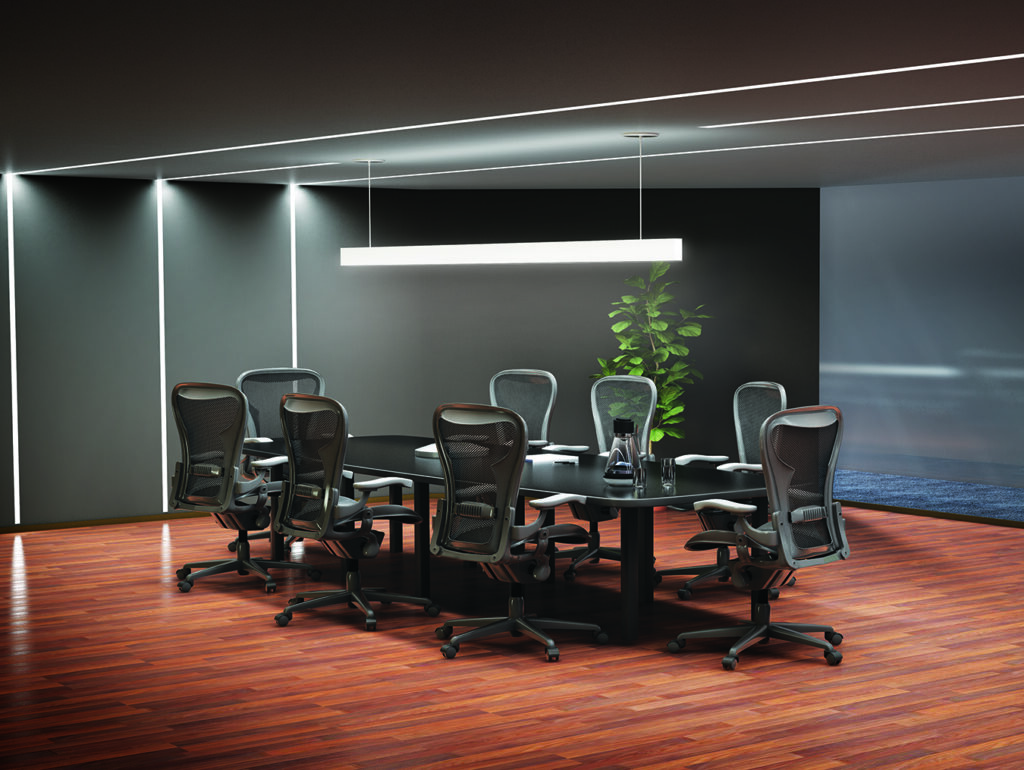 Linea and Grüv deliver robust illumination while offering clean, understated aesthetics and design continuity from discreet linear profiles that match the apertures for clean lines transiting from recessed to linear pendant lines.