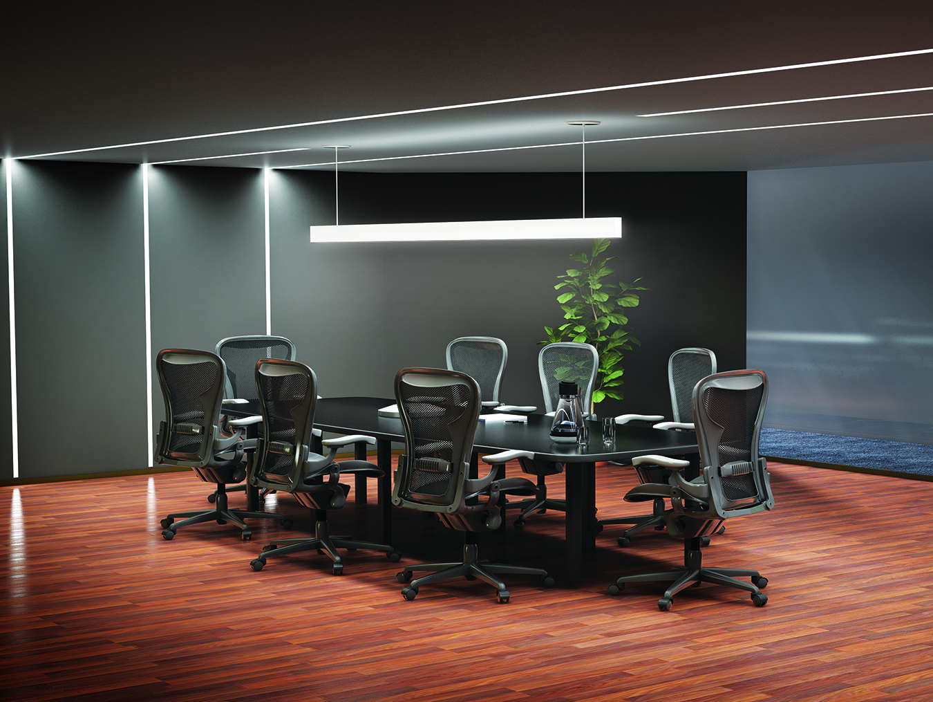 The luminaires can be cable mounted to provide beautiful, comfortable general lighting for open-ceiling applications, over desks or a conference table, with or without a louver.